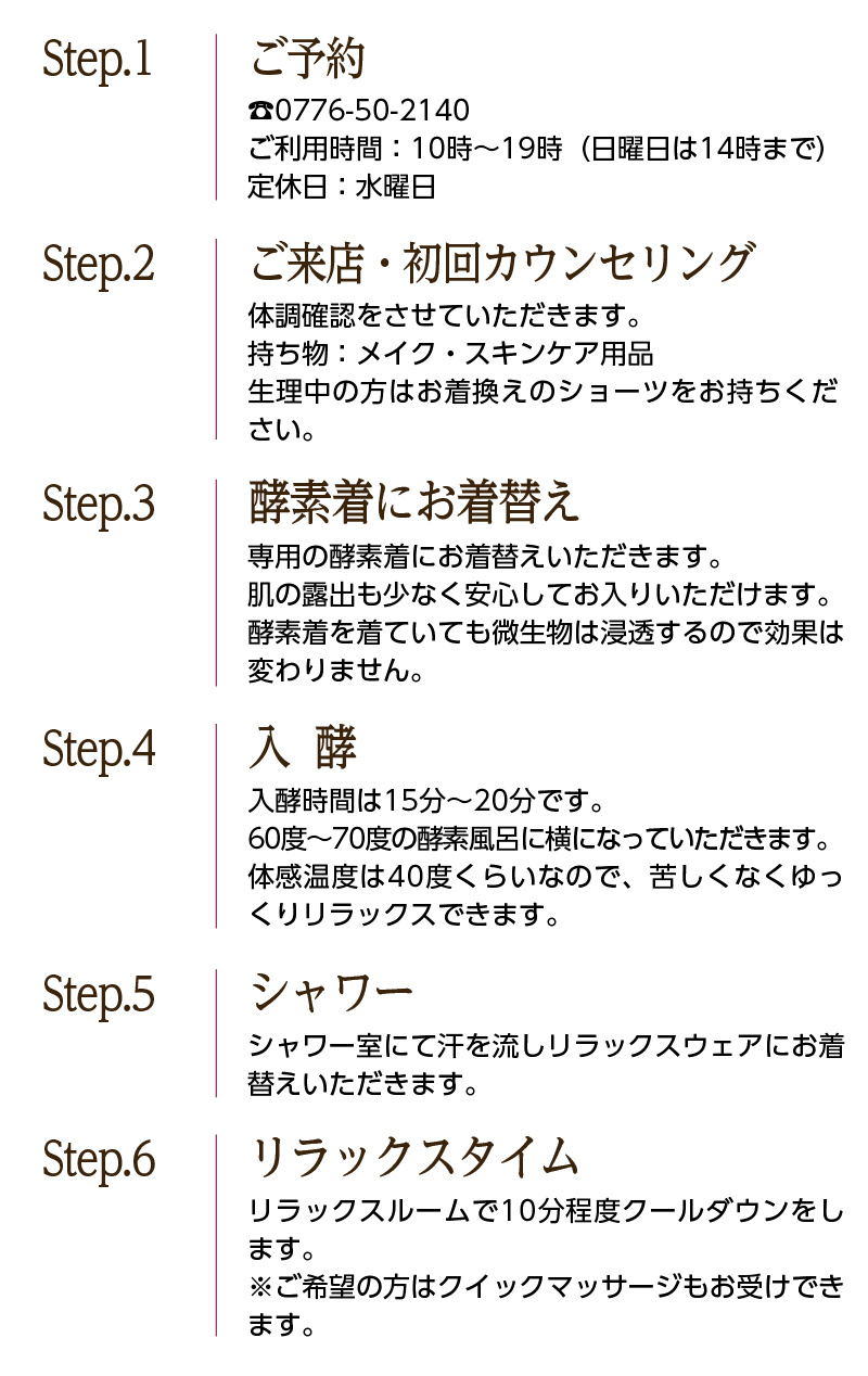 当店の酵素風呂は厳選された米糠と、檜パウダー、酵素液を特殊配合し、乳酸菌や酵母菌、酵素などの栄養素が豊富に、含まれた、命のぬくもりが感じれる発酵温浴です。